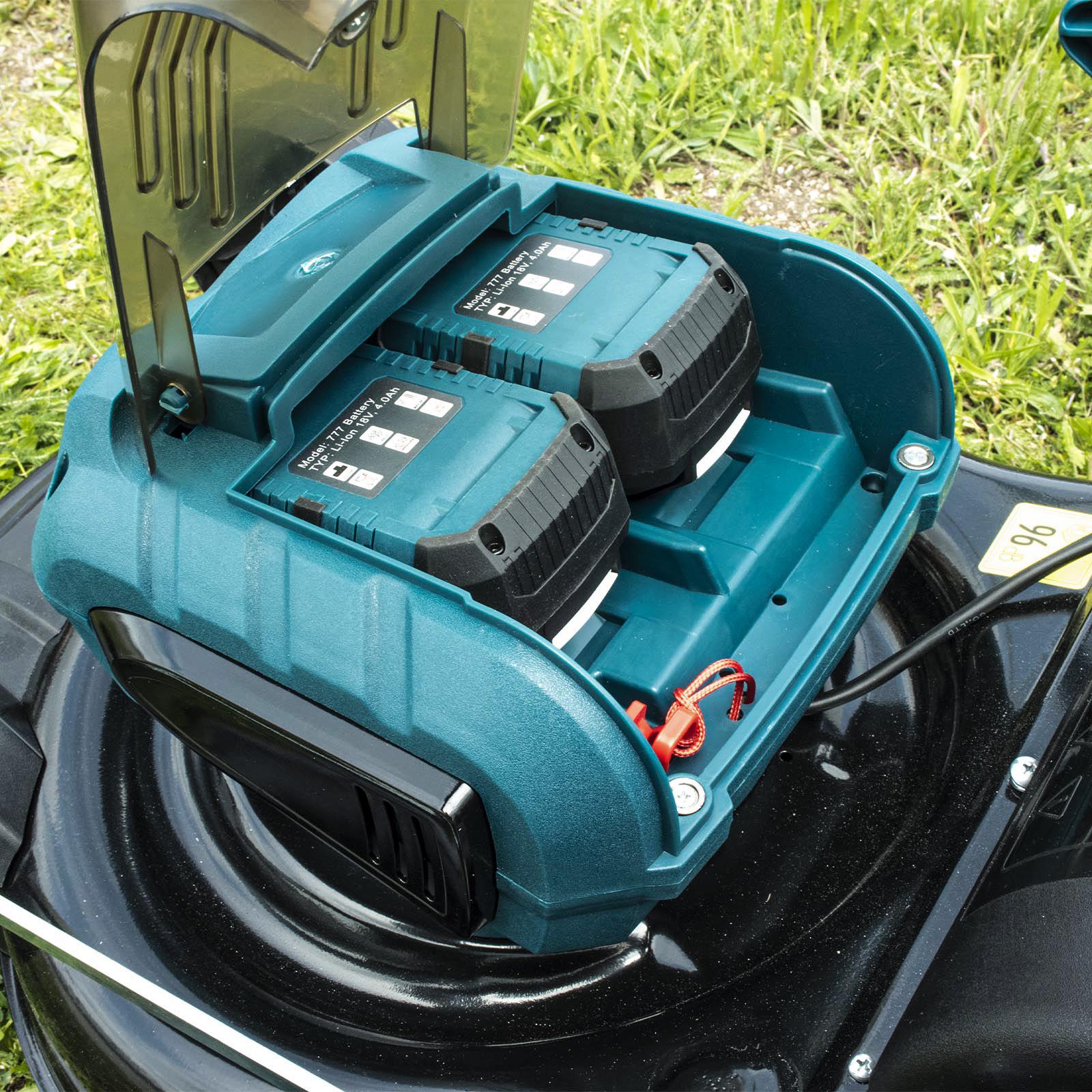 Aku sekačka je silný stroj s bezuhlíkovým motorem poháněný dvěma akumulátory Li-ion 18V v celkovém napětí 36V. Má velmi tichý chod, lze použít akumulátor 2,0Ah a 4,0Ah. Funkce sečení a sbírání. Sekačka je určena na sečení menších ( cca 600 m2), udržovaných ploch, výška sečené trávy - 25 mm až 75 mm Pracovní doba je cca 1 hodina při použití 4,0 Ah baterie za předpokladu, že je tráva suchá. Doporučené jsou 2 přestávky (cca 5min), zabráníte přehřátí stroje. Vlhká tráva výrazně snižuje výkon a dobu použití stroje. Balení totální akumulátory a nabíječku.