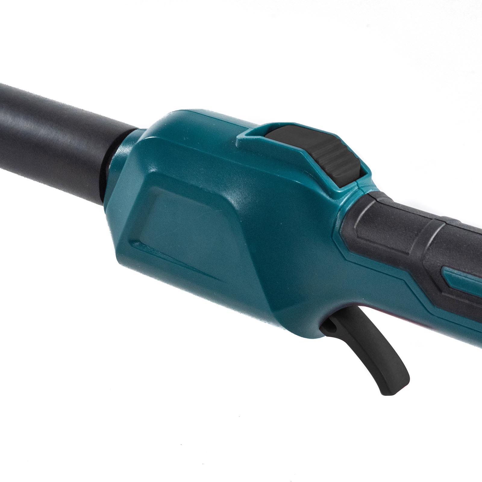 Aku sekačka je poháněna dvěma aku bateriemi Li-Ion 18V v celkovém napětí 36V. Lze použít akumulátor 2,0Ah a 4,0Ah. Strunová sekačka má otočnou hlavu 90° s opěrnými kolečky pro ořezávání okrajů trávníků (například sekání u obrubníků). Balení totální akumulátory a nabíječku.