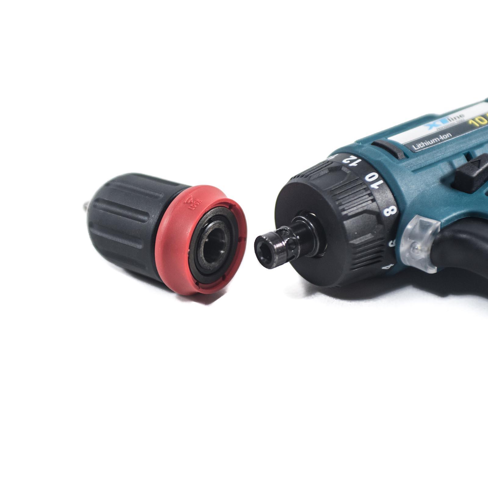 • Kompaktní a lehký design. Aku šroubovák má quick systém s možností odejmutí sklíčidla pro šroubování s držákem na bity 1/4“