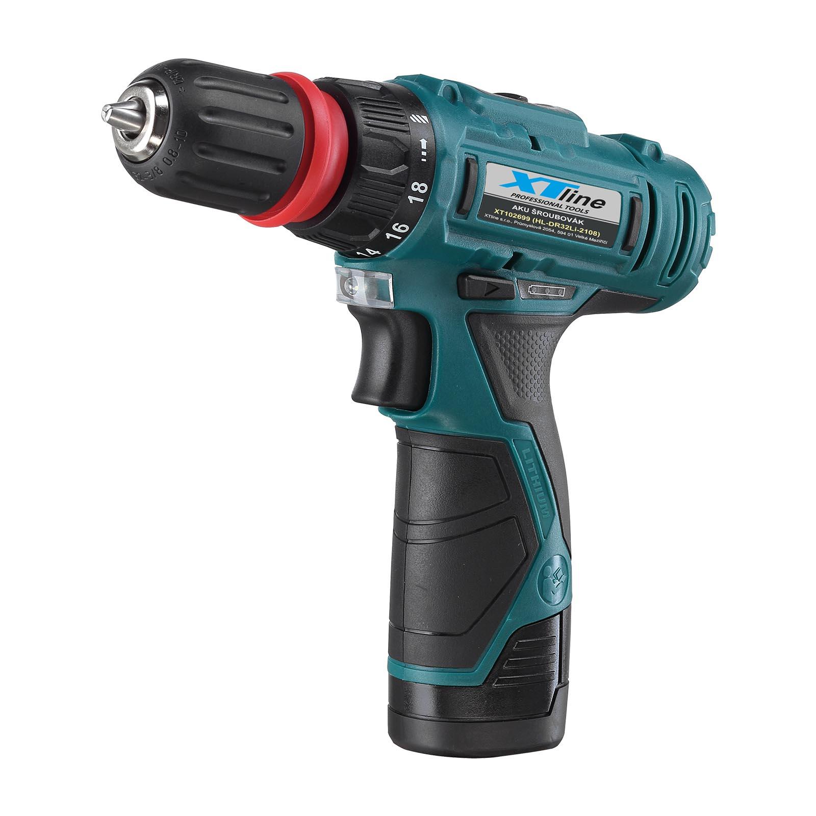 XTline Aku vrtačka 10,8V + 2baterie 2.0 Ah + box + příslušenství 13 dílů
