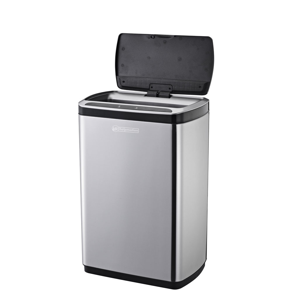 Bezdotykový odpadkový koš zaručuje maximální hygienu a jednoduchost ovládání. Můžete mít plné ruce odpadků, víko koše se automaticky otevře a po vhození i zavře. Tento systém je velmi hygienický a zajistí snížení výskytu bakterií. Otevírání a zavírání koše Helpmation je řízeno chytrým čipem. K pohodlnému otevření víka bezdotykového koše Helpmation CUBE WIDE můžete využít jeden ze dvou způsobů, IR senzor nebo manuální tlačítko na ovládacím panelu.