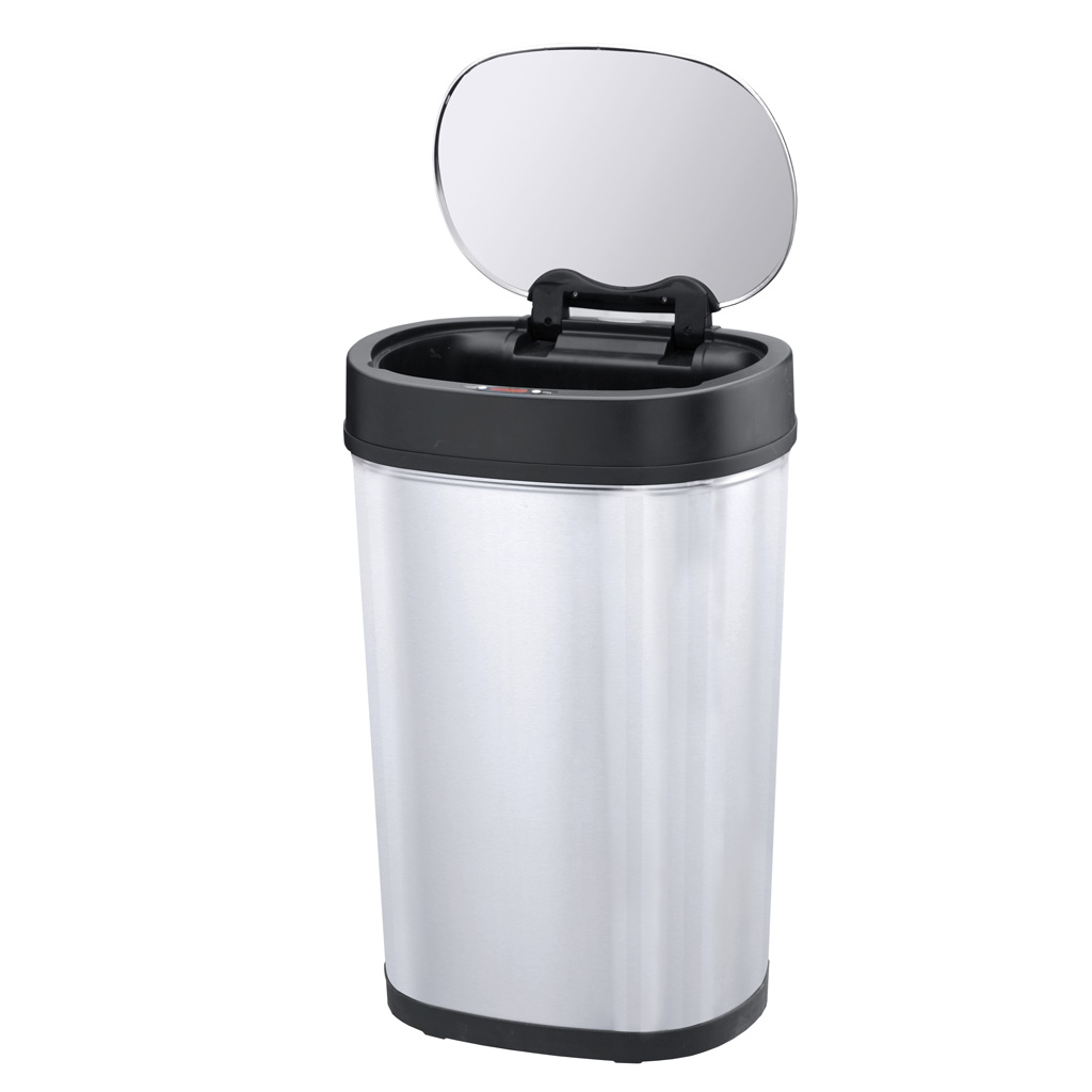Je to velmi jednoduché a hygienické. Přiblížíte se rukou do těsné blízkosti senzoru a víko se samo během 0,5 sek. otevře. Víko zůstane otevřené, dokud se ruka od senzoru neoddálí. Jakmile se od senzoru vzdálíte, teprve poté se za 3 sekundy víko zavře. Ovládání je zcela bezdotykové. Na víku koše jsou umístěna tlačítka pro ruční ovládání víka, pokud jej potřebujete mít delší dobu otevřené. V zadní části víka je umístěný hlavní vypínač ON/OFF pro možnost úplného vypnutí víka.
