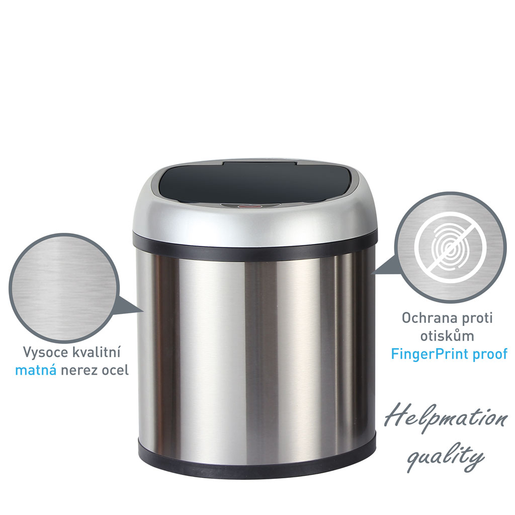 Odolná konstrukce odpadkových košů Helpmation z prvotřídní matné nerezové oceli opatřené ochranou proti otiskům prstů Fingerprint Proof nabízí moderní vzhled, snadné čištění, ochranu proti korozi. Víko odpadkového koše je vyrobeno z pevného ABS plastu. Kvalitní materiály zaručí dlouhodobé používání.