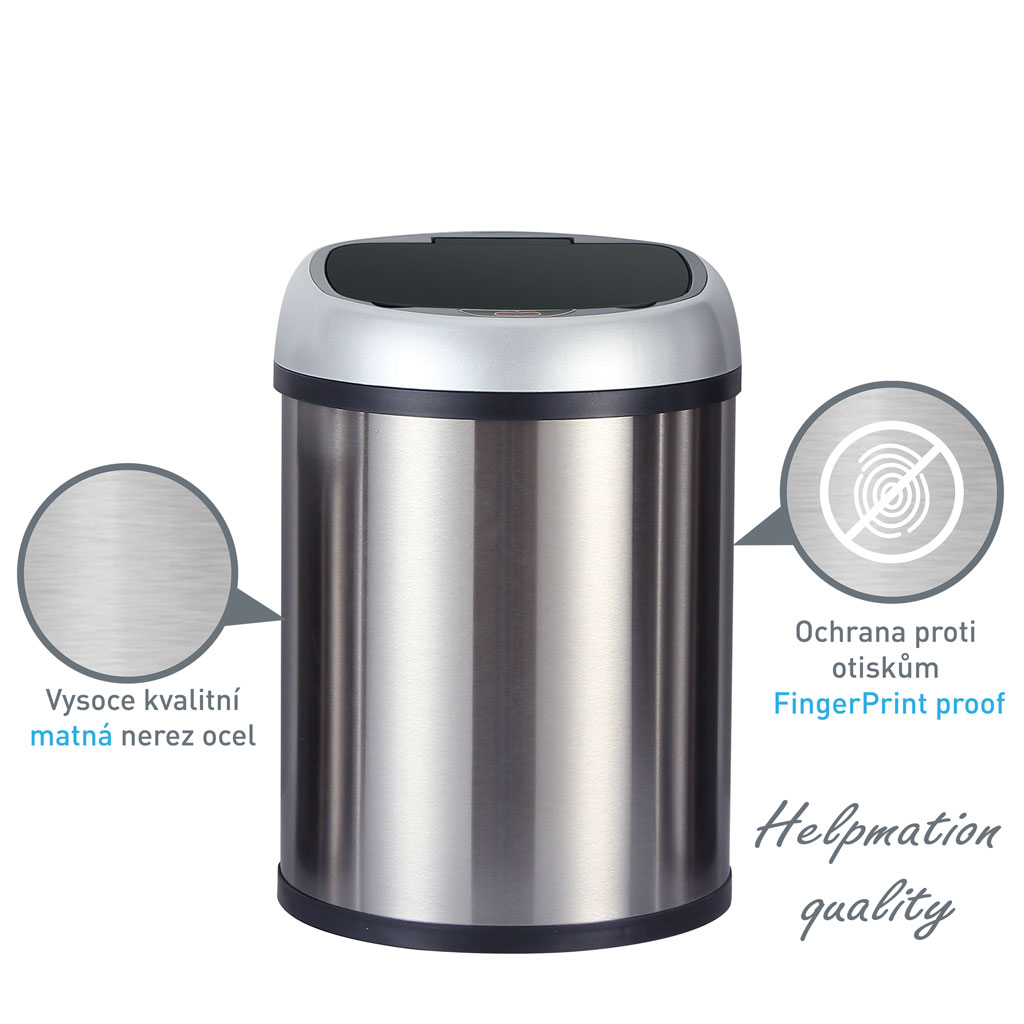 Odolná konstrukce odpadkových košů Helpmation z prvotřídní matné nerezové oceli opatřené ochranou proti otiskům prstů Fingerprint Proof nabízí moderní vzhled, snadné čištění, ochranu proti korozi. Víko odpadkového koše je vyrobeno z pevného ABS plastu. Kvalitní materiály zaručí dlouhodobé používání.