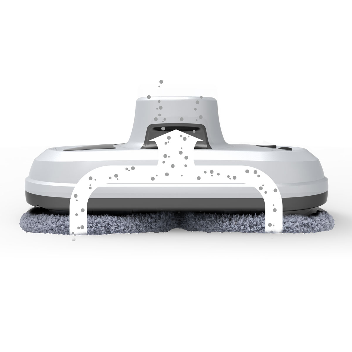 HOBOT 188 má dvě velké čistící utěrky z mikrovlákna, které se pevně a lehce pohybují po čištěném povrchu bez zanechání otisků. Velké utěrky účinně zachycují prach a další nečistoty a vyčistí povrch i těsně podél hran.