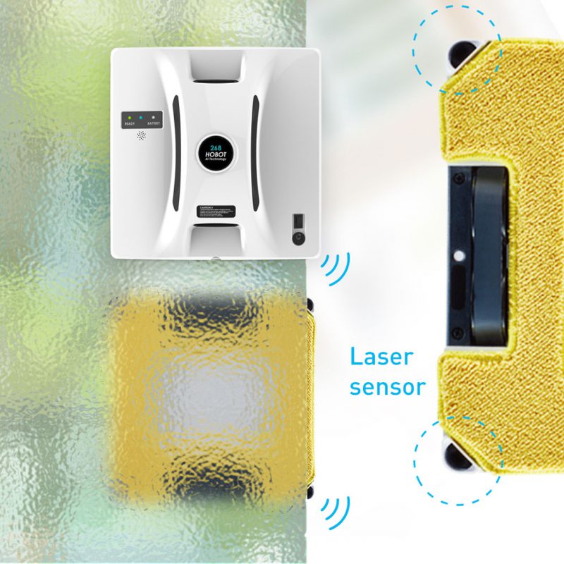 HOBOT 268 je vybaven GYRO senzorem, čtyřmi laserovými senzory a navigačním systémem s AI-Techonology S1.0, které kontrolují pohyb robota po čištěném povrchu podobně jako auto pilot. HOBOT 268 automaticky rozpozná velikost čištěného povrchu a zvládne vyčistit velké plochy o šířce až 6 m. Minimální velikost čištěného povrchu je 40 x 40 cm. Díky laserovým senzorům bez problémů vyčistí i bezrámová okna a zrcadla.