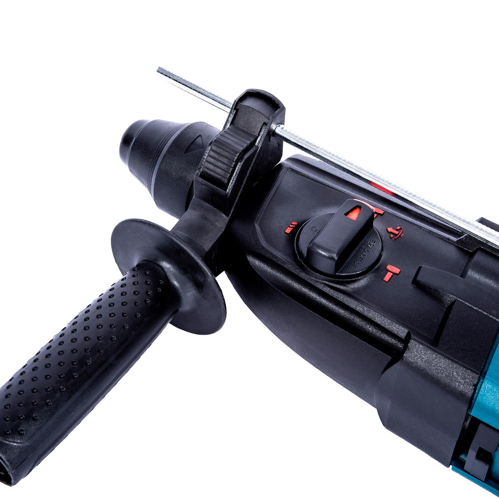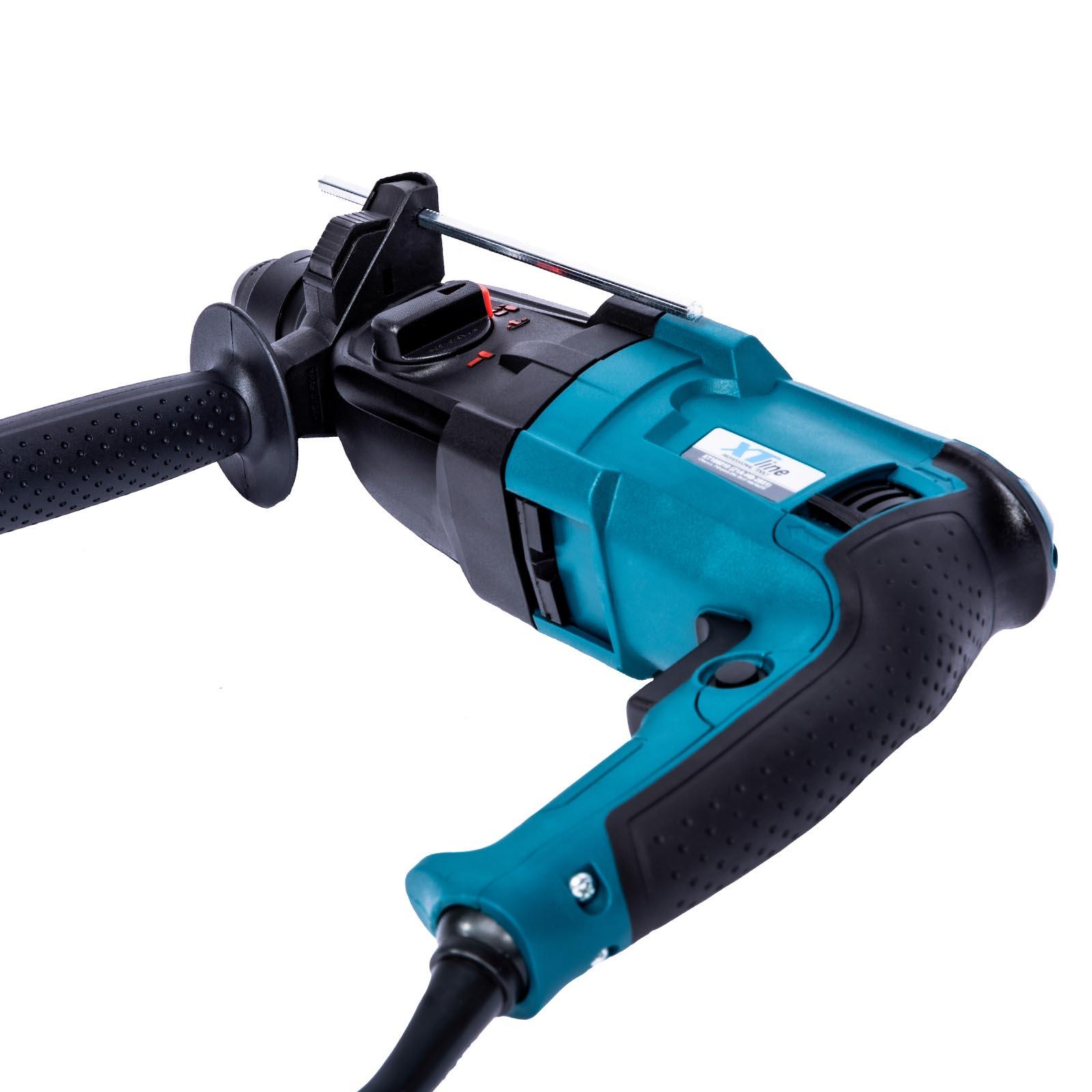 Kombinované kladivo s výměnou hlavou pro upínání vrtáků SDS plus a možnost výměny sklíčidla s použitím vrtání válcovou stopkou. Je určeno pro stavební práce (cihly, beton, kámen atd.) Součástí balení je náhradní sklíčidlo, sekáč plochý, špičatý SDS plus, 3 vrtáky a kufr.