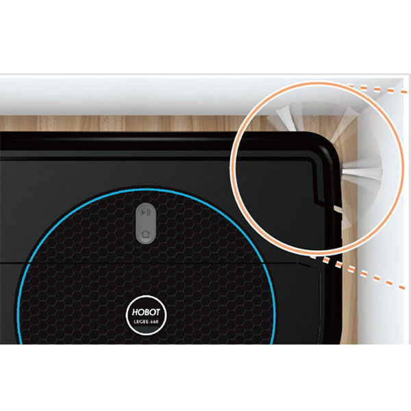 Robotický mop LEGEE 688 vysává nečistoty bezprostředně podél stěny a v rohu místnosti, což umožňuje unikátní D-tvar robota. Boční kartáček umístěný v předním rohu vysavače zajistí precizní vymetení nečistot z rohů a podél stěn a nábytku.
