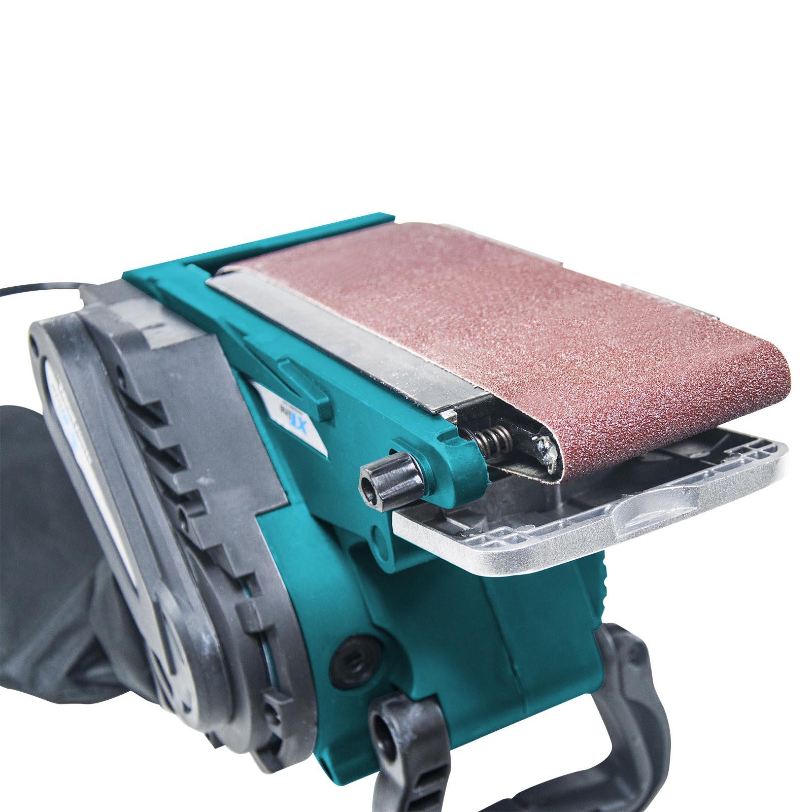 Pásová bruska slouží k broušení dřeva (trámy, latě, desky), kovu (k odstranění rzi na kovové plochy). Lze využít i plochému broušení lakovaných, natíraných a tmelených povrchů. Výhodou je možnost vystředění brusného pásu, ryvhlá a snadná výměna brusného uvolněním pojistky a nastavení polohy rukojeti pomocí aretace.