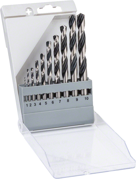 Text o výrobku, příslušenství šedé 10dílná sada vrtáků do kovu, HSS PointTeQ